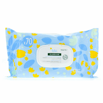 KLORANE Bébé Lingettes Epaisses Nettoyantes 70 lingettes