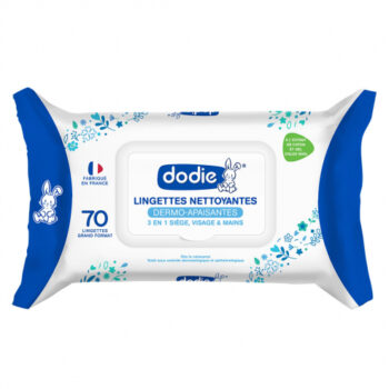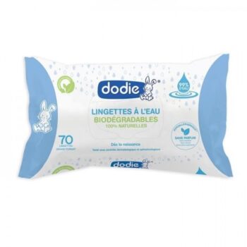 - Dodie Lingettes à l’Eau Biodégradables assurent ne bonne tolérance cutanée pour prendre soin de la peau de bébé sans la dessécher ni l’irriter.
