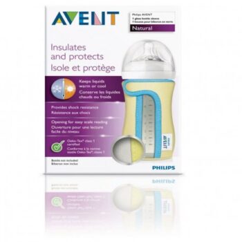 La housse de protection pour biberon en verre Philips Avent résiste aux chocs afin de protéger votre biberon