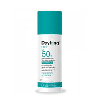 Ce BB Fluide teinté Sensitive SPF 50+ de la marque Daylong est conçu pour les peaux sensibles mixtes à grasses ou à tendance allergique au soleil, dans le but de masquer les imperfections, et de protéger des rayons UVA/UVB.