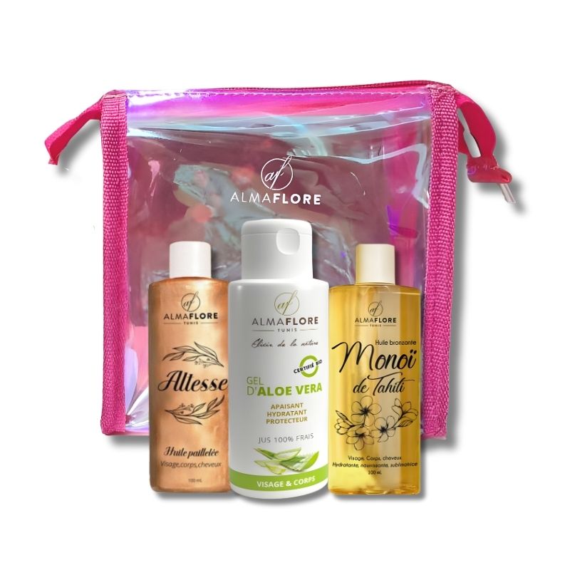 découvrez ALMAFLORE PACK GOLD (HUILE PAILL 100ml+GEL ALOE+HUILE BRONZ) disponible en tunisie