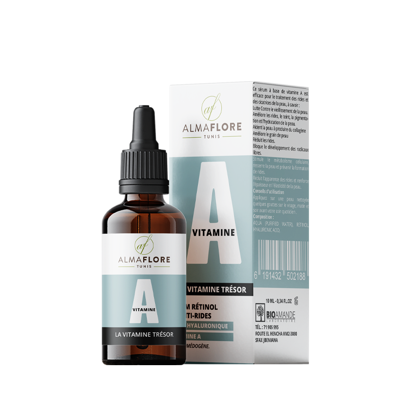 ALMAFLORE VITAMINE A est un produit de beauté qui a été développé pour combattre les problèmes de vieillissement de la peau, les rides et les cicatrices, grâce à l’action du “Rétinol”, qui est un ingrédient essentiel de notre épiderme.