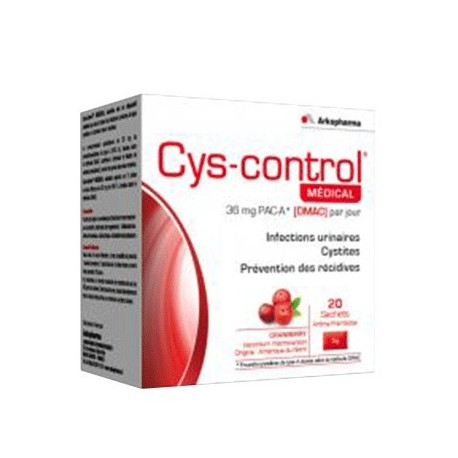 ARKOPHARMA CYS-CONTROL Médical, 20 sachetsARKOPHARMA CYS-CONTROL MEDICAL. Le complément alimentaire Cys-Control MEDICAL est un dispositif médical qui aide à traiter les infections urinaires de type cystites et à prévenir leurs récidives.