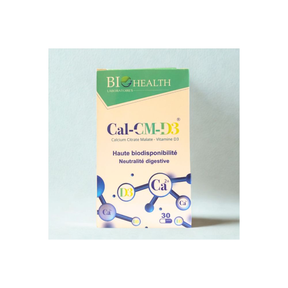 Biohealth CAL-CM D3 associe un calcium biodisponible sous forme de citrate malate à la vitamine D3 pour optimiser l’absorption intestinale. Ce complément se prend à jeun, sans goût désagréable ni effets digestifs. Il contribue à renforcer la solidité des os et soutient le bon fonctionnement global de l’organisme.