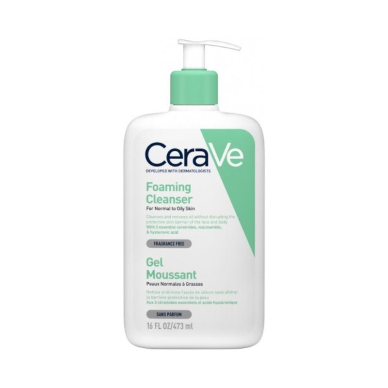 Cerave gel moussant nettoie, purifie et apaise les peaux normales, mixtes et grasses.