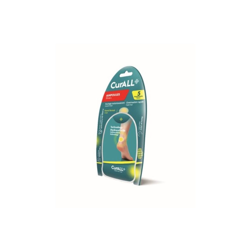 Le CurALL Ampoules Large Talon B/5 est un pansement dermocosmétique conçu pour traiter les ampoules de grande taille, particulièrement au niveau du talon. Sa technologie hydrocolloïde crée un milieu humide favorisant une cicatrisation rapide tout en protégeant la peau des frottements, chaussures et impuretés. Son format XL couvre généreusement la zone, offrant confort et discrétion.