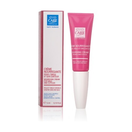 La Crème Nourrissante haute tolérance EYE CARE est une formulation très riche pour le soin de l’ongle et son contour. Les actifs qui la composent sont : La Céramide, qui assure souplesse et hydratation, le calcium pour participer à la croissance et la protection de l’ongle, la vitamine E, qui ralentit le vieillissement gr ce à son action antiradicalaire et pour son rôle d’écran vis-à-vis des UV, le beurre de Karité comme hydratant puissant. Ainsi par sa composition et sa texture cette crème est un excellent soin nutritif pour l’ongle et son contour. Indication : Soin de l’ongle et de son contourConseil d’utilisationConseillée en cure, l’application se fait d’abord au pinceau, puis par petits massages sur l’ongle démaquillé et le contour des ongles jusqu’à complète pénétration de la crème. Application 3 à 4 fois par semaine. L’amorçage pour la sortie du produit est parfois long, il est quelquefois nécessaire d’insister plus de vingt rotations. CompositionAqua, Paraffinum Liquidum, Glycerin, Ethylhexyl Palmitate, Synthetic Fluorphlogopite, Butyrospermum Parkii, Steareth 21, Glucamine, Steareth 2, Acrylates / C10-30 Alkyl Acrylate Crosspolymer, Parfum (Fragrance), Cl 77891 (Titanium Dioxide), PEG-2 Stearate, Ceteareth 25, Hydrogenated Coconut Oil, Phenoxyethanol, Ethylhexylglycerin, Cl 77491 (Iron Oxide), Cellulose Gum, Mica, Cetyl Alcohol, Sodium Stearate, Tocopheryl Acetate, Silica, Magnesium Sulfate, Polyaminopropyl Biguanide, Zinc Stearate, Cl 77163 (Bismuth Oxychloride), Calcium Pantothenate, PEG-8, PEG-8 / SMDI Copolymer, Palmitoyl Myristyl Serinate, Sodium Polyacrylate.