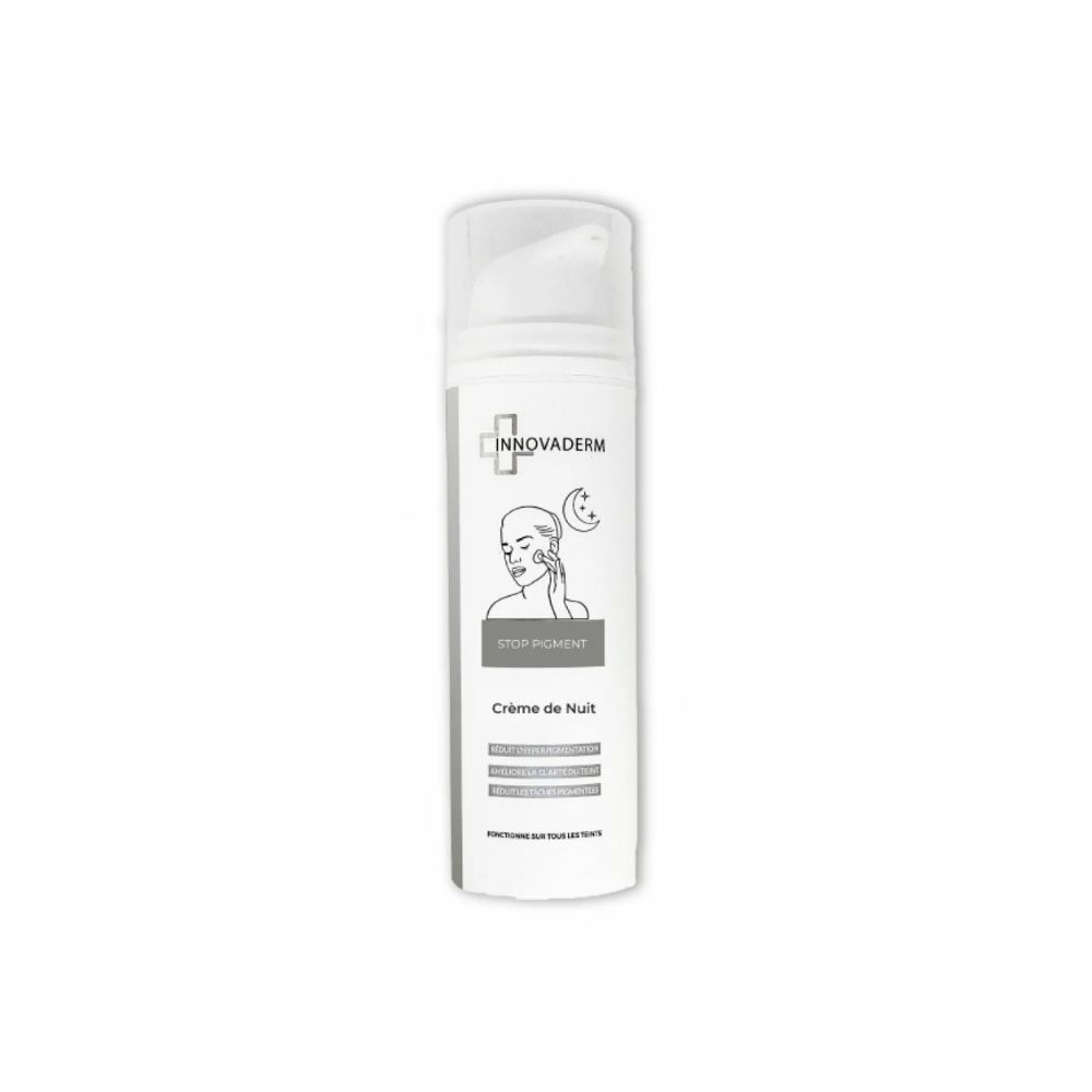 INNOVADERM STOP PIGMENT Crème de Nuit 50ML est une crème de nuit hautement performante conçue pour régénérer la peau, unifier le teint et atténuer les taches pigmentaires pendant le sommeil. Sa formule innovante agit en profondeur pour révéler une peau plus lumineuse et éclatante.