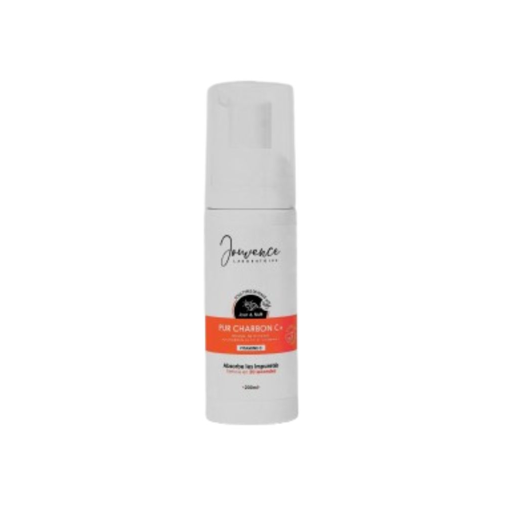 JOUVENCE PUR CHARBON Mousse Nettoyante 150ML est une mousse nettoyante au charbon actif et vitamine C qui absorbe les impuretés.