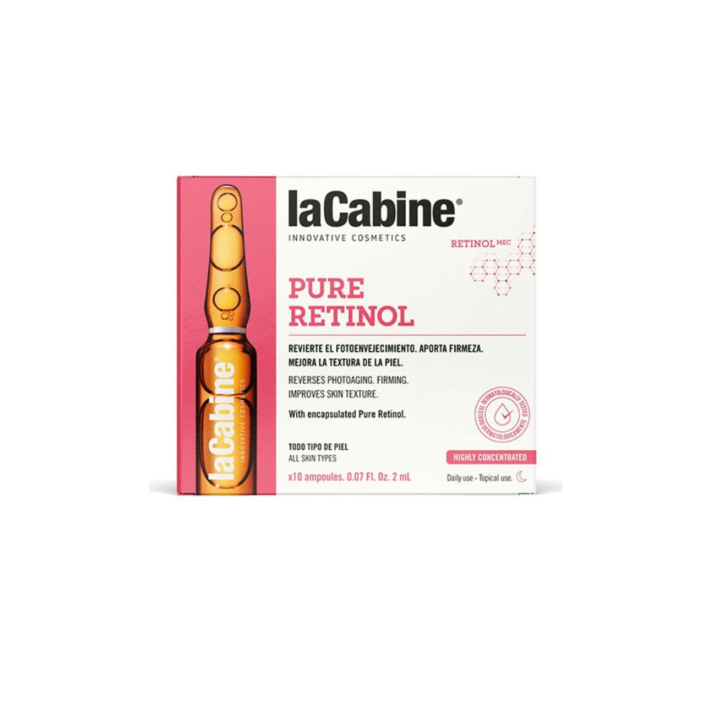La Cabine Pure Retinol est un soin visage concentré en ampoules monodoses conçu pour améliorer le grain de peau, lisser les rides et harmoniser le teint. Sa formule associe du rétinol pur encapsulé, de l’extrait de mûre et des phospholipides pour optimiser la régénération cellulaire, protéger contre les radicaux libres et favoriser une absorption maximale des actifs.