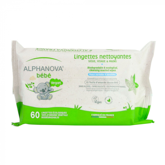 Lingettes bébé parfumées, épaisses et extra douces. Composition 100% d’origine végétale et biodégradables. Ces lingettes sont pratiques à transporter et permettent de nettoyer bébé en douceur peu importe l’endroit. Enrichie en huile d’amande douce, elles nettoient en douceur la peau de bébé, lors de la toilette et du change. Elles sont imprégnées d’eau nettoyante et laisseront une odeur de bébé tout propre. Lingettes testées sous contrôle dermatologique. Sans paraben, sans alcool, sans phénoxyéthanol.