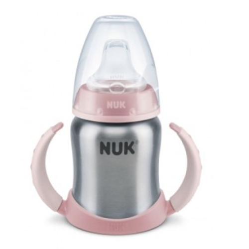- Articles livrés : 1 tasse en acier inoxydable NUK, 1 bec en silicone souple et poignées robustes
