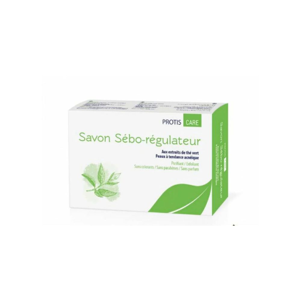Le savon Protis Sébo-Régulateur est formulé avec des extraits de thé vert pour nettoyer la peau en douceur tout en régulant l’excès de sébum. Il aide à prévenir les imperfections et à purifier les peaux grasses.