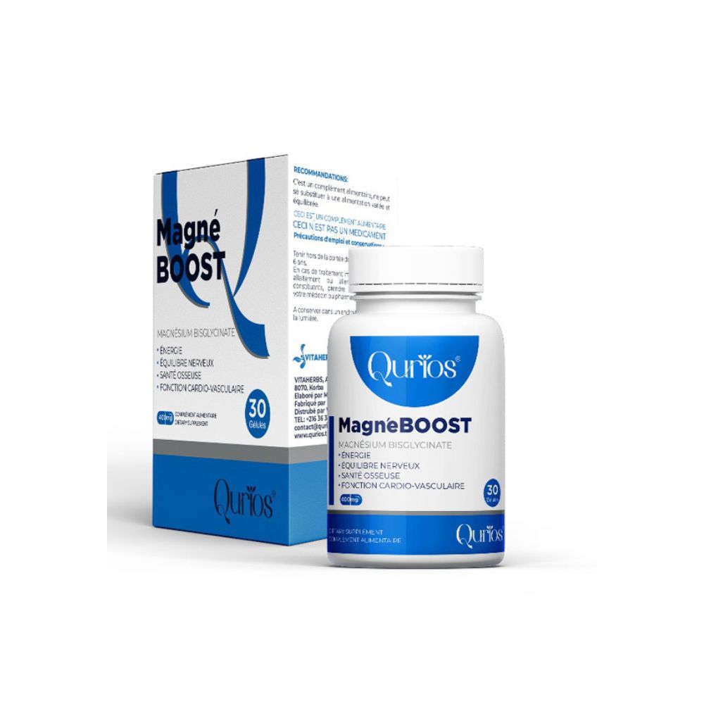 Magné-BOOST (30 gélules) est un complément alimentaire conçu pour soutenir la vitalité, l’équilibre nerveux et musculaire ainsi que le métabolisme énergétique. Sa formule associe magnésium bisglycinate hautement biodisponible et vitamines B1, B6 et B12 pour favoriser le bien-être général et réduire la fatigue.