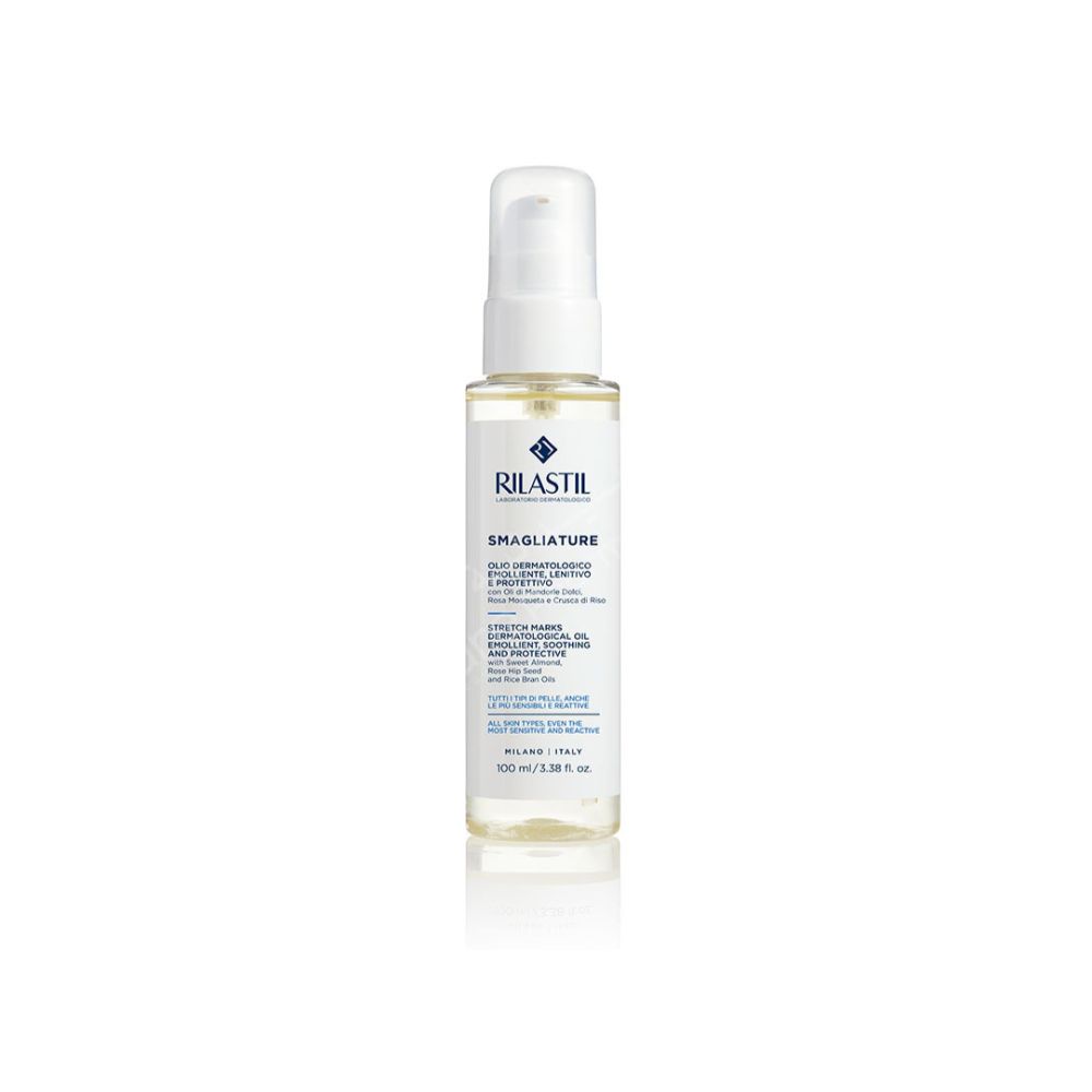 Rilastil Huile Smagliature est une huile dermatologique enrichie en amande douce, rose musquée et son de riz, conçue pour réduire les vergetures. Elle nourrit intensément, apaise et rend la peau douce, veloutée et élastique, tout en préservant le film hydrolipidique. Adaptée à la grossesse et à l’allaitement.