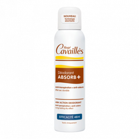 Le déodorant ROGE CAVAILLES DÉO ABSORB+ EFFICACITÉ 48H SPRAY est disponible en format de 150ml, pratique et facile à utiliser.