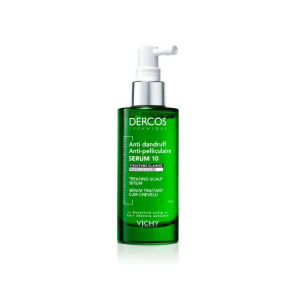 Le sérum Vichy Dercos 10 cuir chevelu est un soin innovant conçu pour les cuirs chevelus à tendance pelliculaire. Sa formule enrichie en piroctone olamine, niacinamide et huile de ricin agit efficacement contre les pellicules libres, les démangeaisons, rougeurs et excès de sébum, tout en apaisant et renforçant la santé du cuir chevelu.